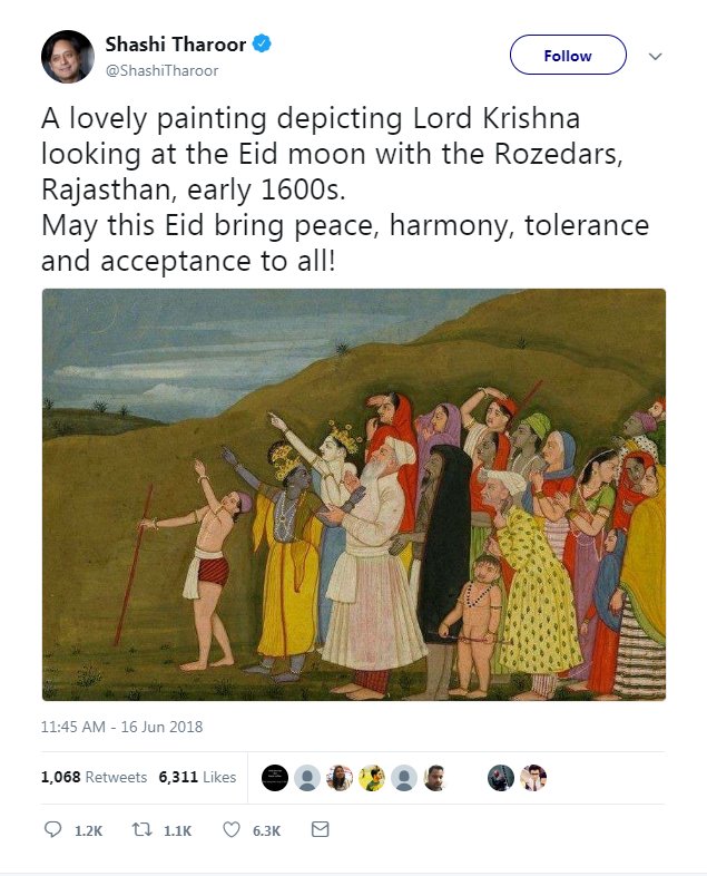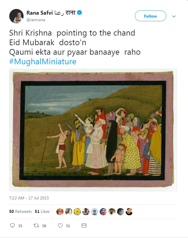4. Then it was @azmishabana who circulated the painting with a fake claim that Krishna was showing Eid moon