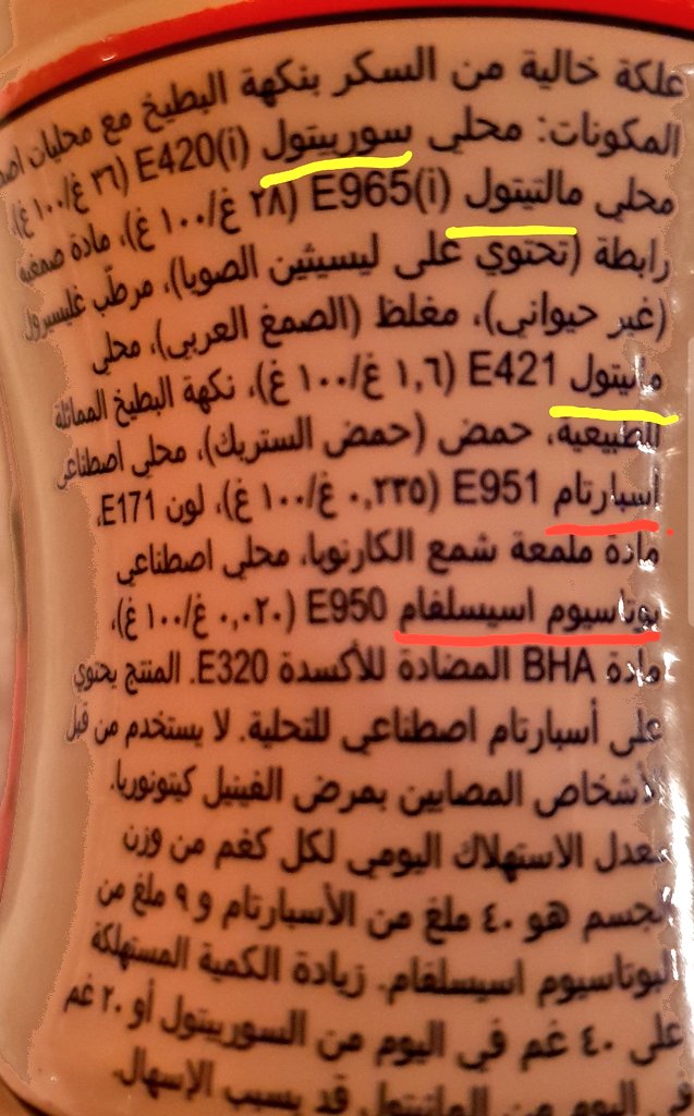 هذا المنتج مثلا يخلط سكر الكحول #سوربيتول مع #سوكرالوز الكيميائي.