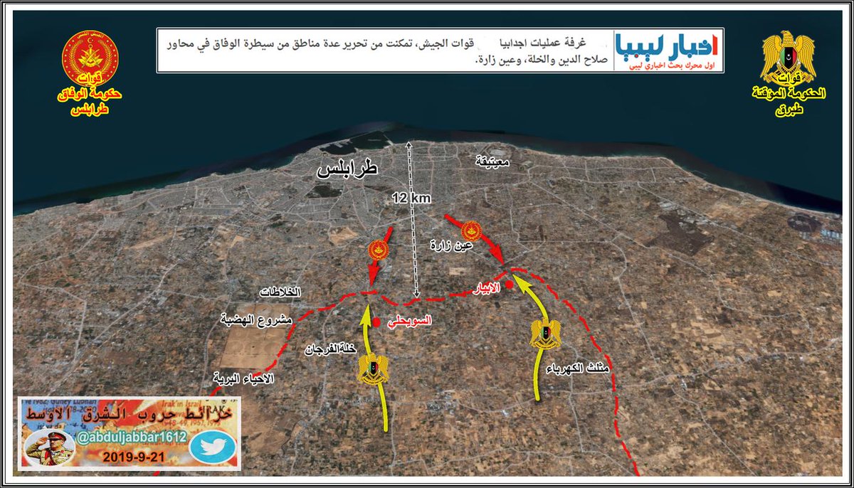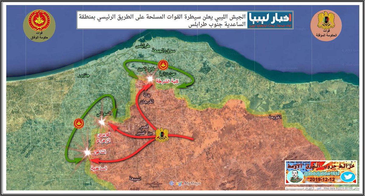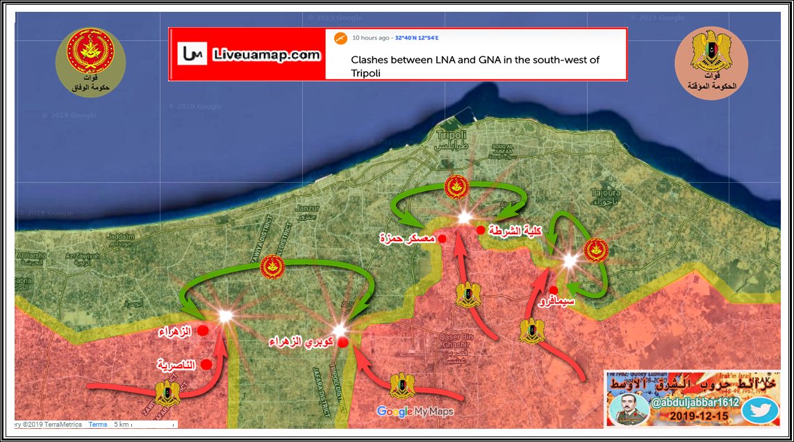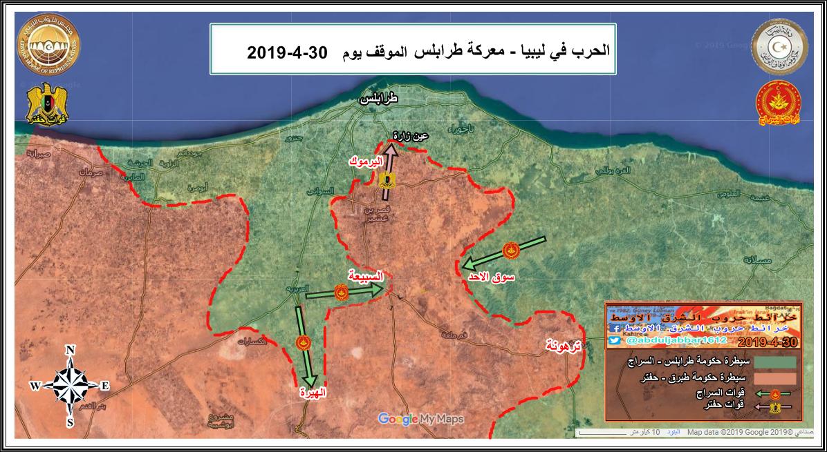 مقارنة بسيطة في السيطرة على الارض في طرابلس بين الطرفين يوم بداية المعرة 4-4-2019 ويومنا هذا 15-12-2019 .
