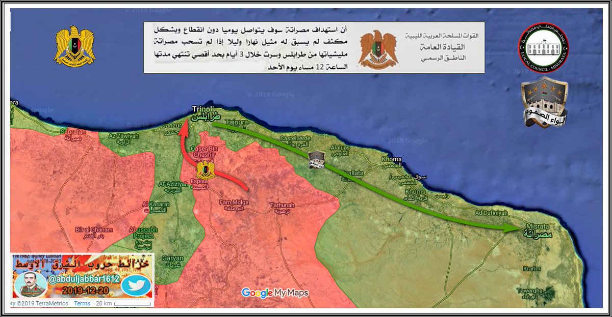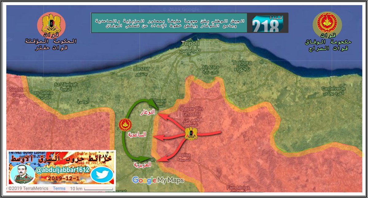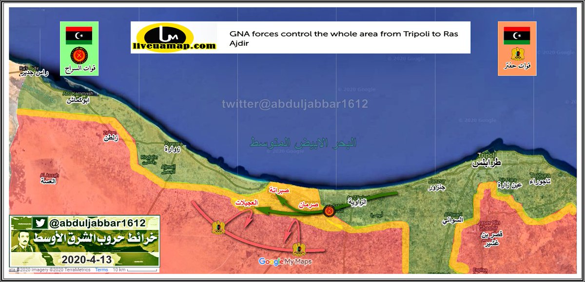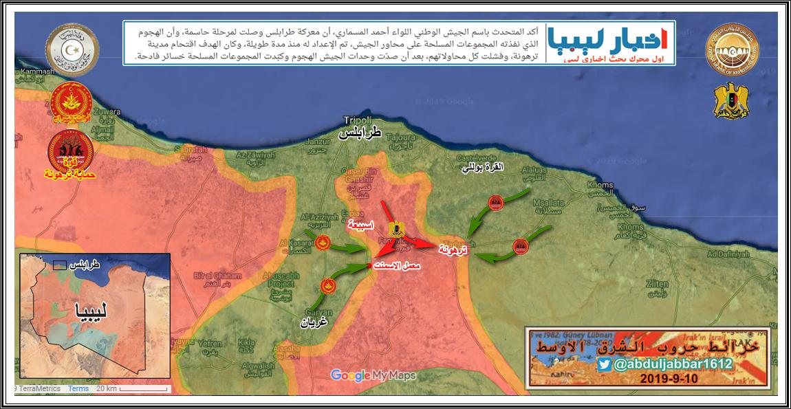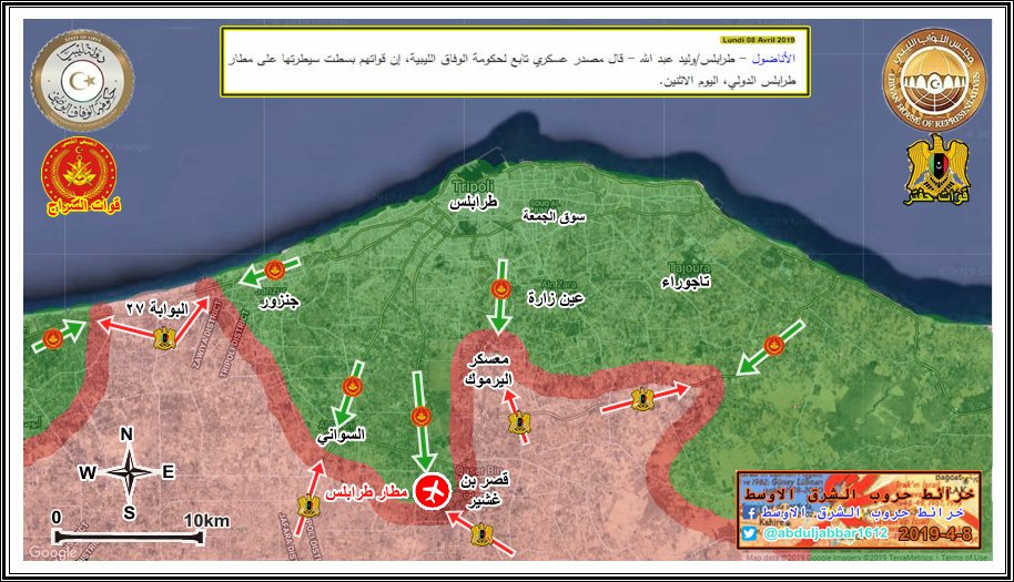 مقارنة بسيطة في السيطرة على الارض في طرابلس بين الطرفين يوم بداية المعرة 4-4-2019 ويومنا هذا 15-12-2019 .