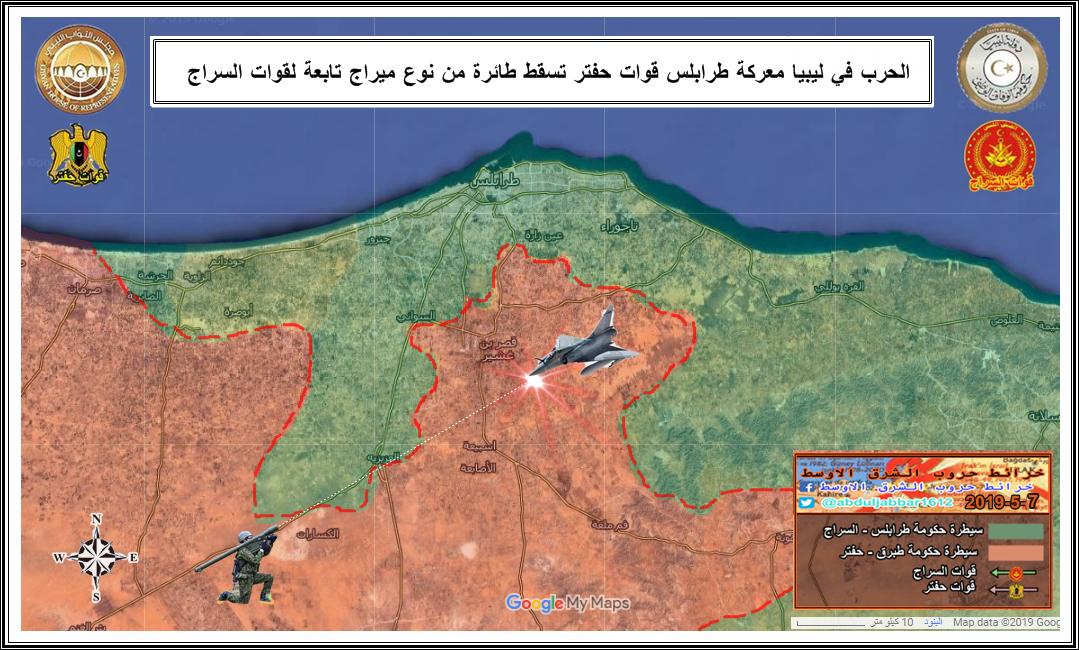 قائد في جيش حكومة الوفاق ( قوات السراج ) يصرح باسقاط طائرة مصرية نوع رافال فرنسية اثاء غارة لها على مدينة مصراتة الليبية .
