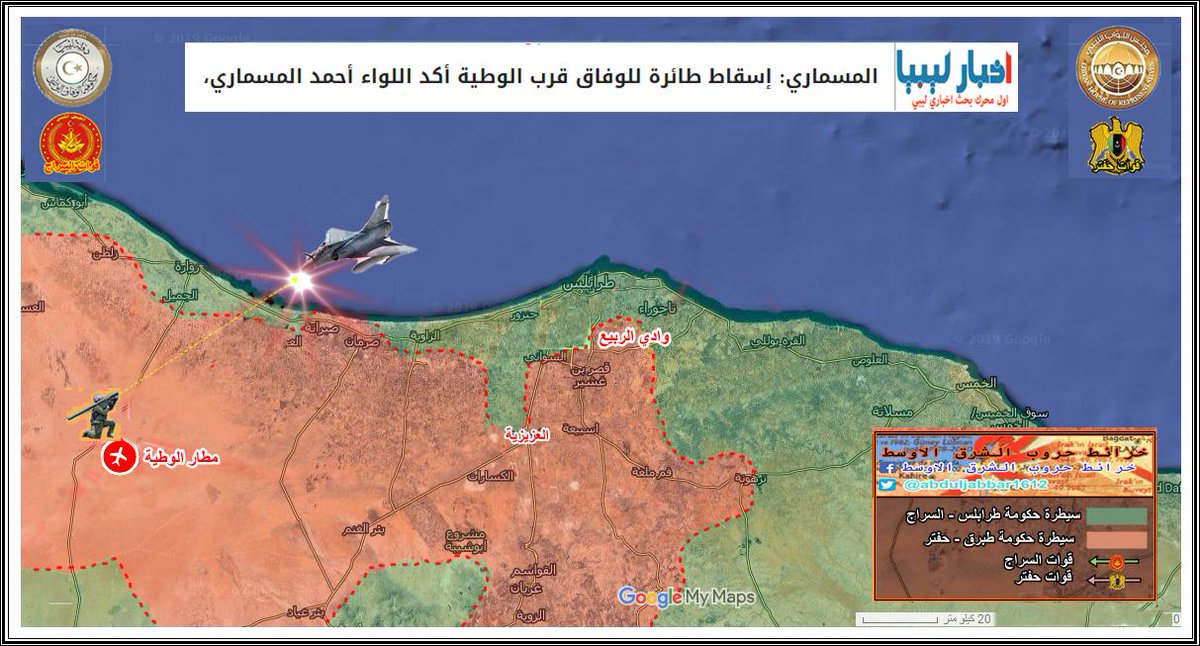 قوات حكومة الوفاق ( السراج ) تشن هجوم مباغت على قاعدة الوطية الجوية وتستعيدها من الجيش الوطني ( قوات حفتر ) . الخبر نقلا عن ( liveuamap.com )