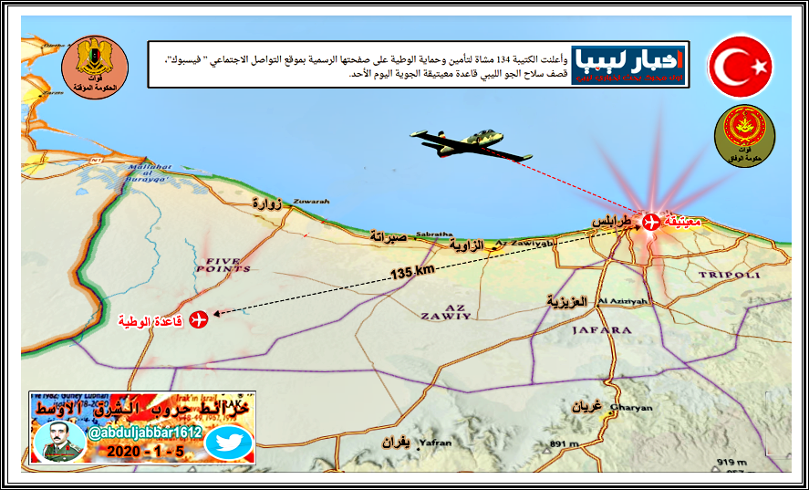 بعد طلب حكومة السراج من تركيا التدخل لايقاف تقدم قوات حفتر يتواجد حاليا 80 ضابط تركي 40 منهم لتشتغيل منظومة تشويش و10 لاغراض التدريب في اكاديمة داخل مطار معيتيقة . الخبرنقلا عن :