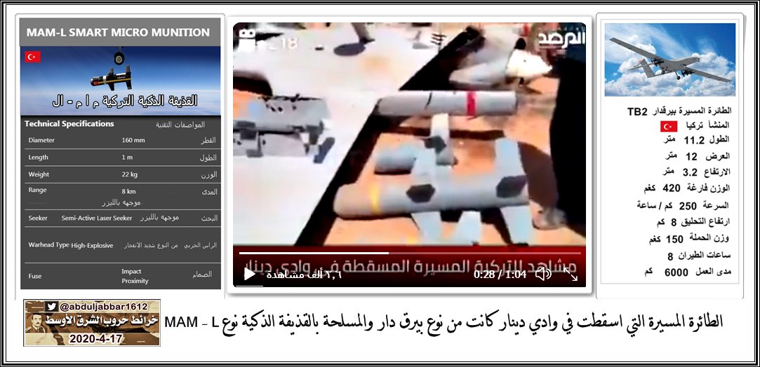 يوم عصيب للصناعة الحربية التركية بعد سقوط اربع طائرات مسيرة اليوم في ليبيا ومن خلال الصور التي رصدناه تبين انها من نوع TB-2بيرقدار والمزودة بالقذائف الذكية الموجهه بالليزر نوع MAM-L السؤال هل دخل سلاح مضاد لصالح قوات حفتر احدث هذه المجزرة الجوية ؟