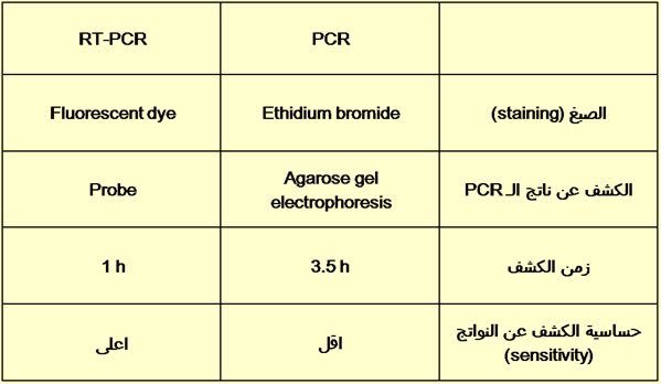 -هناك نوعان من PCR : 1. PCR العادي : وهو ما تم شرحه في الخطوات السابقة . 2. rtPCR : وهو اختصار (Real Time PCR) يقوم على نفس المبدأ ولكن الخلاف الوحيد يكون مربتط الجهاز بكمبيوتر لتحديد الوقت الحقيقي لبدء التفاعل ومن ثم الكمية الحقيقية لعدد نسخ الحمض النووي (DNA ) يتبع..