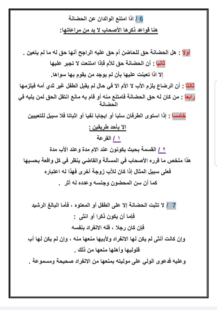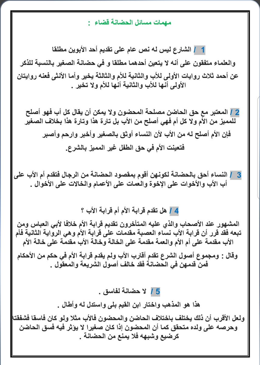 مهمات مسائل #الحضانة