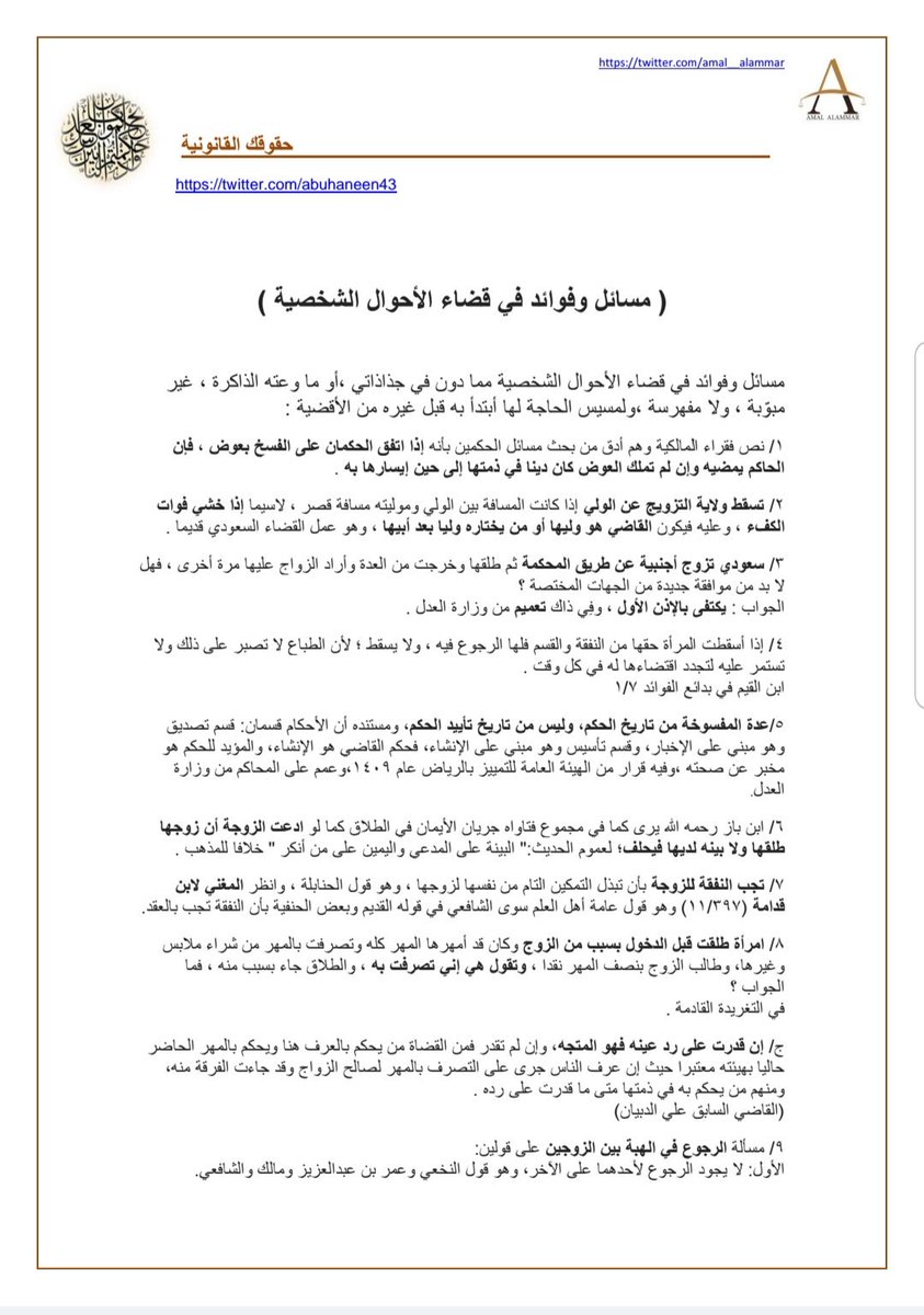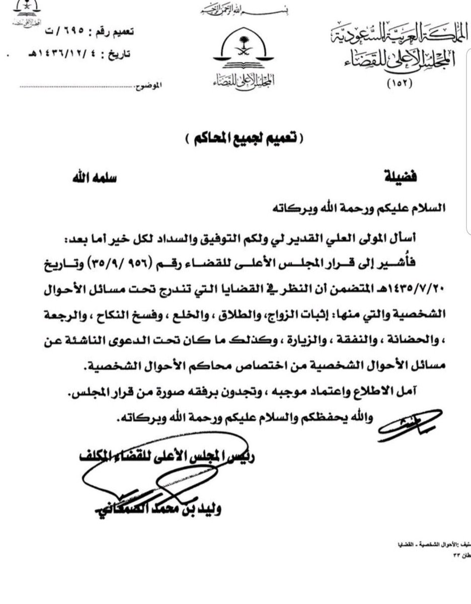 سأرفق تحت هذه التغريدة - بإذن الله تعالى- ما أقف عليه من أوامر سامية ومبادىء وقرارات وتعاميم ذات صلة #بحقوق_المرأة_وقضايا #الأحوال_الشخصية