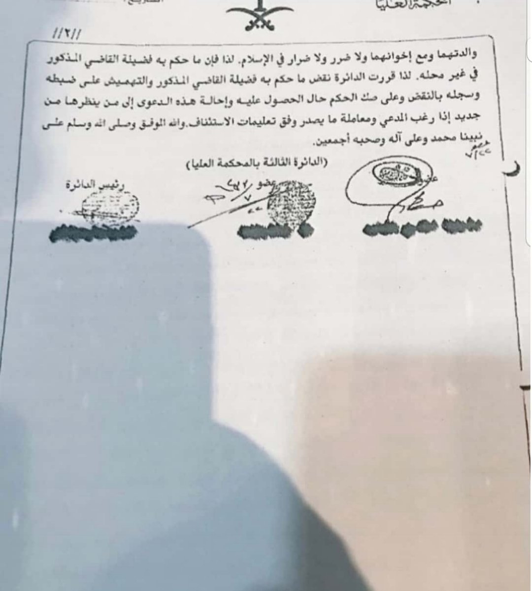 قرار المحكمة العليا بشأن #حضانة_البالغ_الرشيد