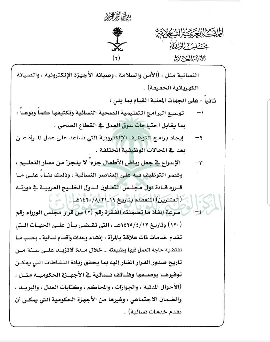 قرار وزاري؛ يتعلق ببيئة #عمل_المرأة في القطاع الخاص