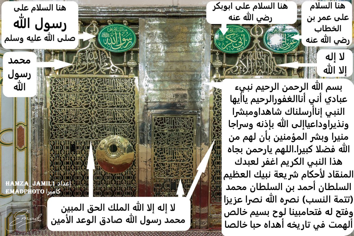 أسماء العشرة المبشرين بالجنة مكتوبة على المقصورة الشريفة ،،،