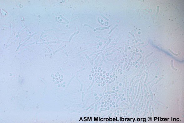 بحيث ان الكرات الصغيرة عبارة ( spores) والعصيات الطويلة تعتبر ( pseudohyphae)