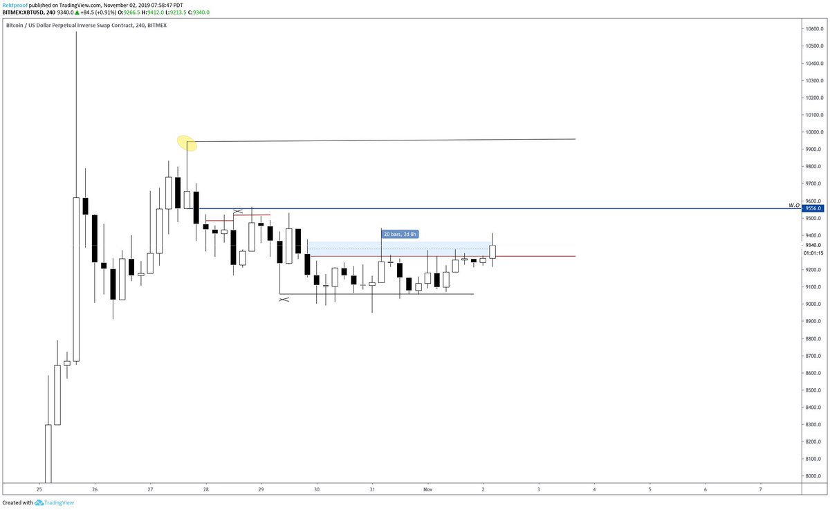$BTC / $USD People seemed to have shorted this move up. H1 closes over the hourly EQ after breaking market structure. H4 demand formed good area for a HL 9345-9280) 4 days of price hanging range low with failure to break and untapped highs above. Yeah, not shorting.