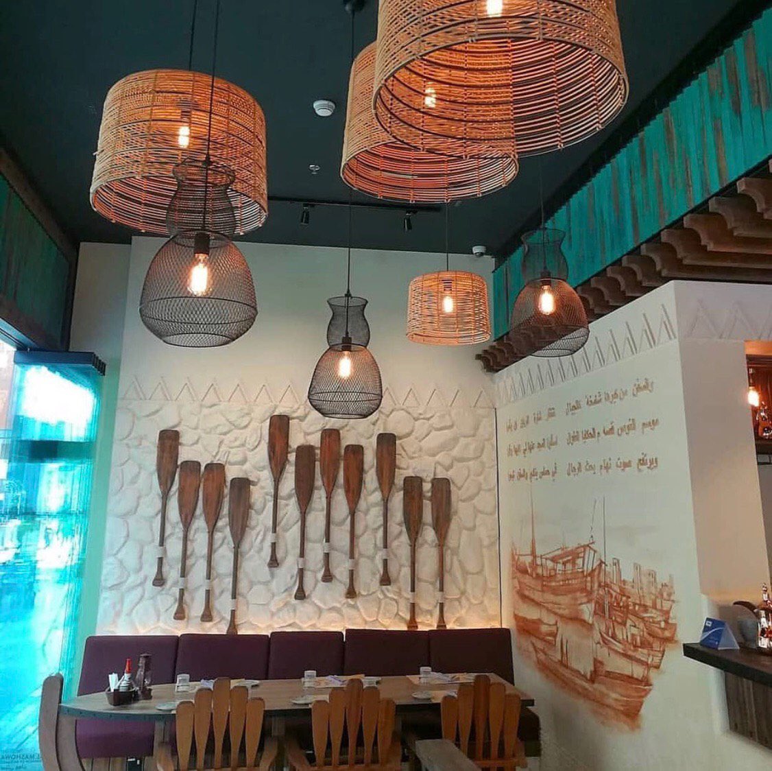 ديكور المطعم يذكرك في مطاعم مراكش على طريقة الحضارة الاسلامية القديمه