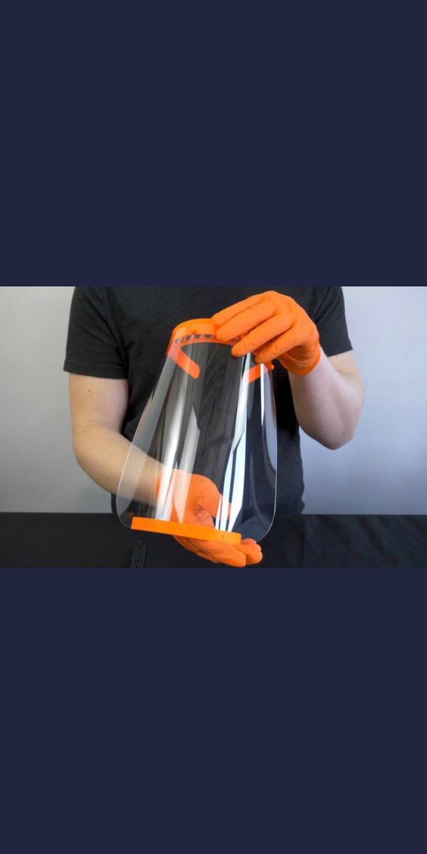 1-Face shield, simple design, the main benefit of which is to protect the doctor from the patient’s droplets. At @3Ditcorp we developed the shield by adding joints to add the ability to lift the shield off the face when needed.