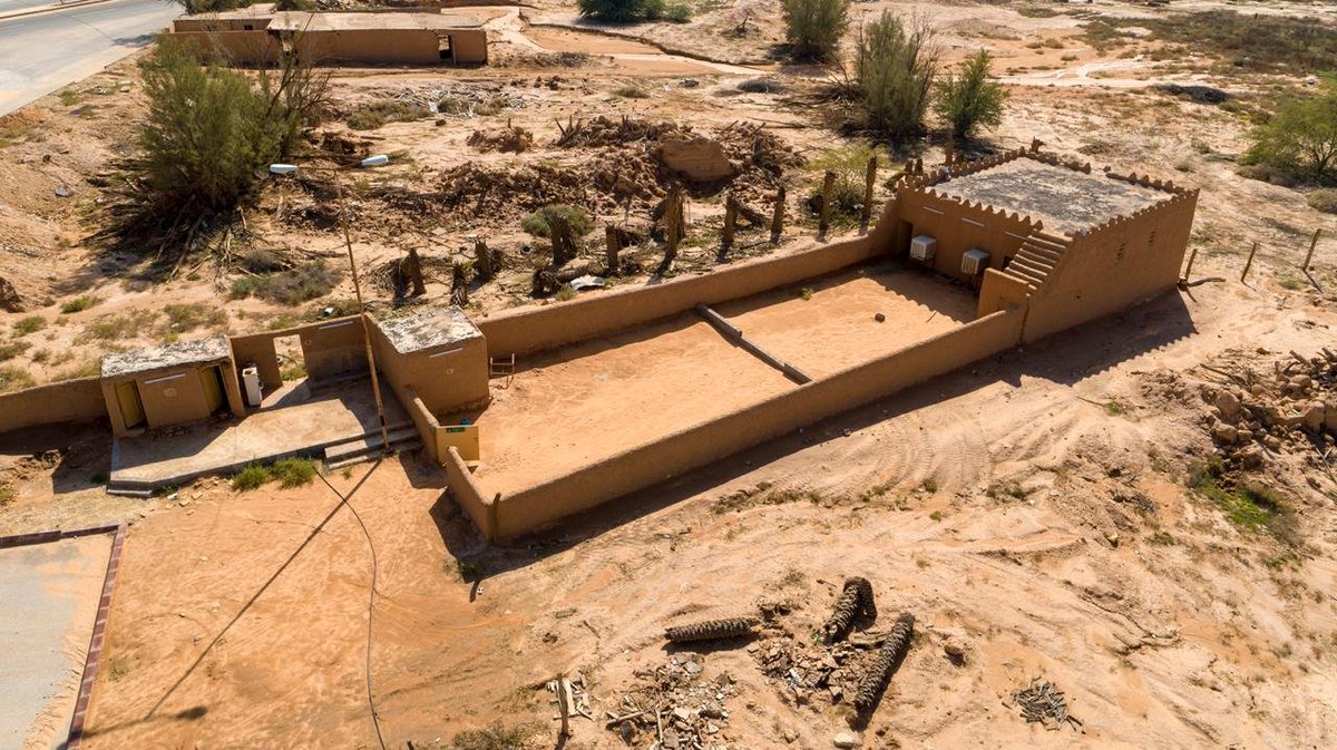 من مشروع سمو #ولي_العهد لترميم وتأهيل المساجد التاريخية بالمملكة .. مسجد قصر الشريعة بالهياثم.