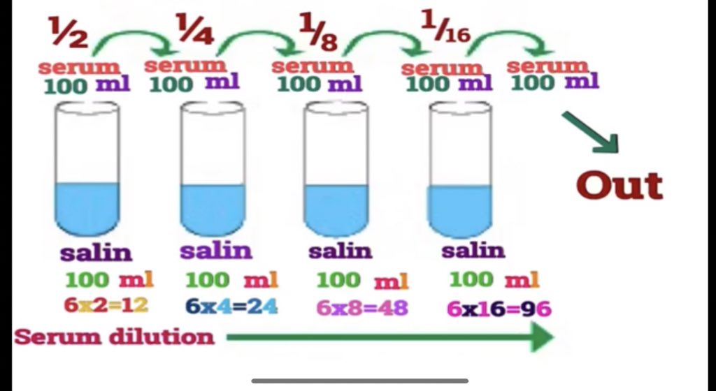 فكرة الSerial dilution اننا نخفف العينة الإيجابية بمعنى تاني اننا نقلل عدد الأجسام المضادة في العينة الإيجابية لين نوصل للنتيجة السلبية Negative