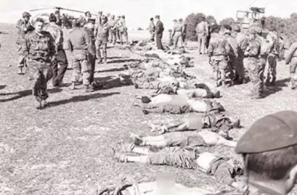 Ravines & other stretches of wasteland were at first used as #massgraves.The #French wanted incriminating bodies to disappear, however, so they were dug up and transported by the lorry load to a settler’s farm that contained an industrial kiln. #VEDay #AlgerianGenocide #Setif