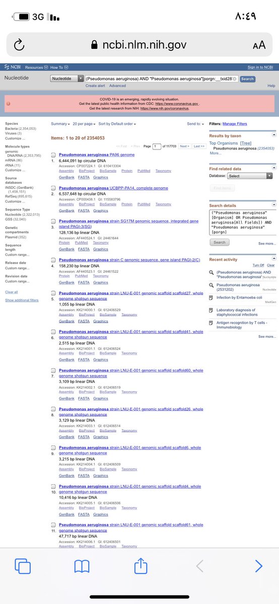 هذا الموقع يعتبر كنز ماتتخيلوا الكم الهائل من المعلومات الموجودة فيه😎 راح نطلع السلسلة الجينية للبكتيريا او الفيروس (مايكرو)👍🏻😍