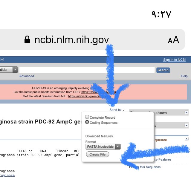 ٥-راح اضيف في البحث ampc جين مهم في البكتيريا وهو المسؤول عن مقاومتها للمضادات الحيوية💊❌ ٦-ونعمل البحث + احدد الاختيار بشكل دقيق + اختار الي اجد فيه المطلوب👍🏻✨ ٧-تنفتح لنا صفحة في اول الصفحة في كلمة send to نضغط عليها نختار