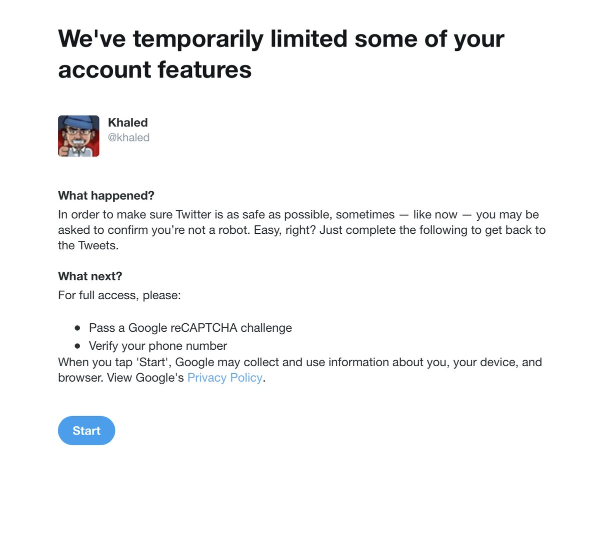 @bampen @jack @TwitterSupport @SaudiMac @biz @GeorgeSalama @TwitterSafety @kayvz @bbb_us @riyadhcinema @ajb_sf @vijaya @b_otyf Still being bullied by Twitter โautomated systemsโ