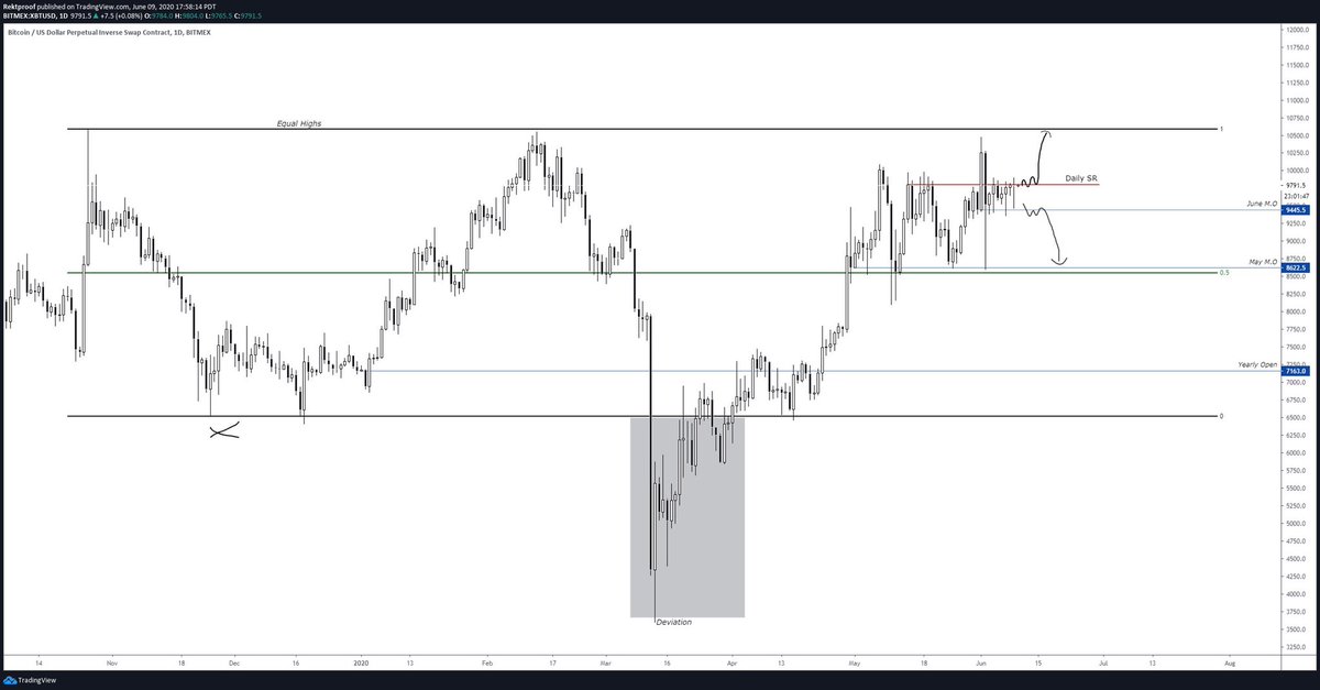 June Monthly open is the pivot for now. Closes below would signal a drive down
