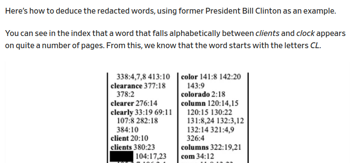 The deposition includes a complete alphabetized index of the redacted and unredacted words that appear in the document. Slate and others have been working on unredacting the names. #opDeathEaters slate.com