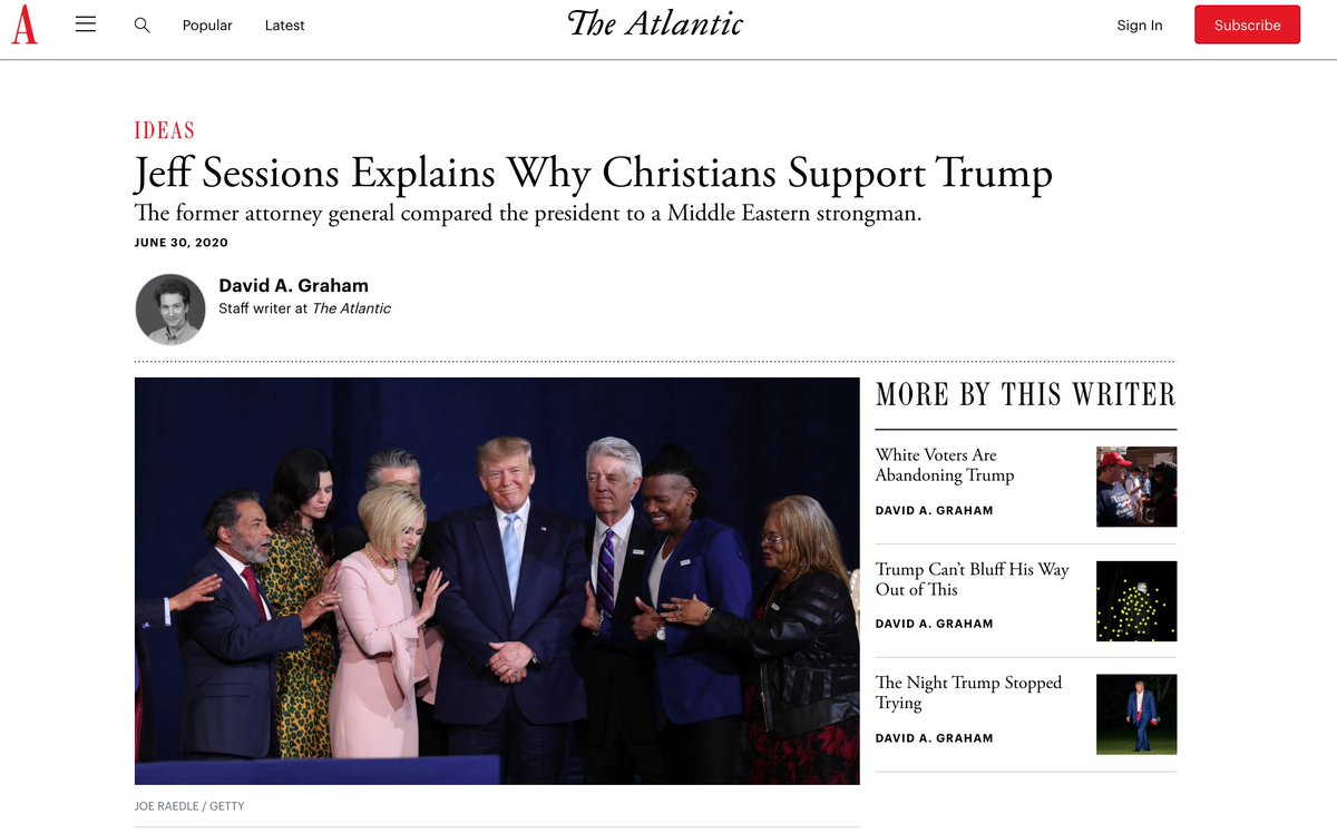 المدعي العام السابق جيف سيشنز رغم أنه لم ينل حظوة عند #ترامب إلا أنه من أكبر المؤيدين له ولأجندته السياسية ، بينما تشير التحليلات التي يتداولها النخب في قراءة العلاقة بين صعود أسهمه عند المسيحيين إلى أن سلوكه الديني أو معتقداته لاعلاقة لها بتأييده منقطع النظير