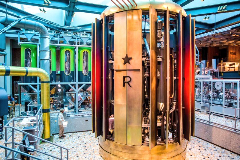 يتألف مركز المحمصة الجديدة من براميل تحميص برونزية إرتفاعها 22 قدمًا ، وهي الأولى من نوعها والتي تتيح للضيوف تصور كامل عن مرحلة معالجة وإزالة الغاز خلال تحميص حبوب البن. 🍒☕
