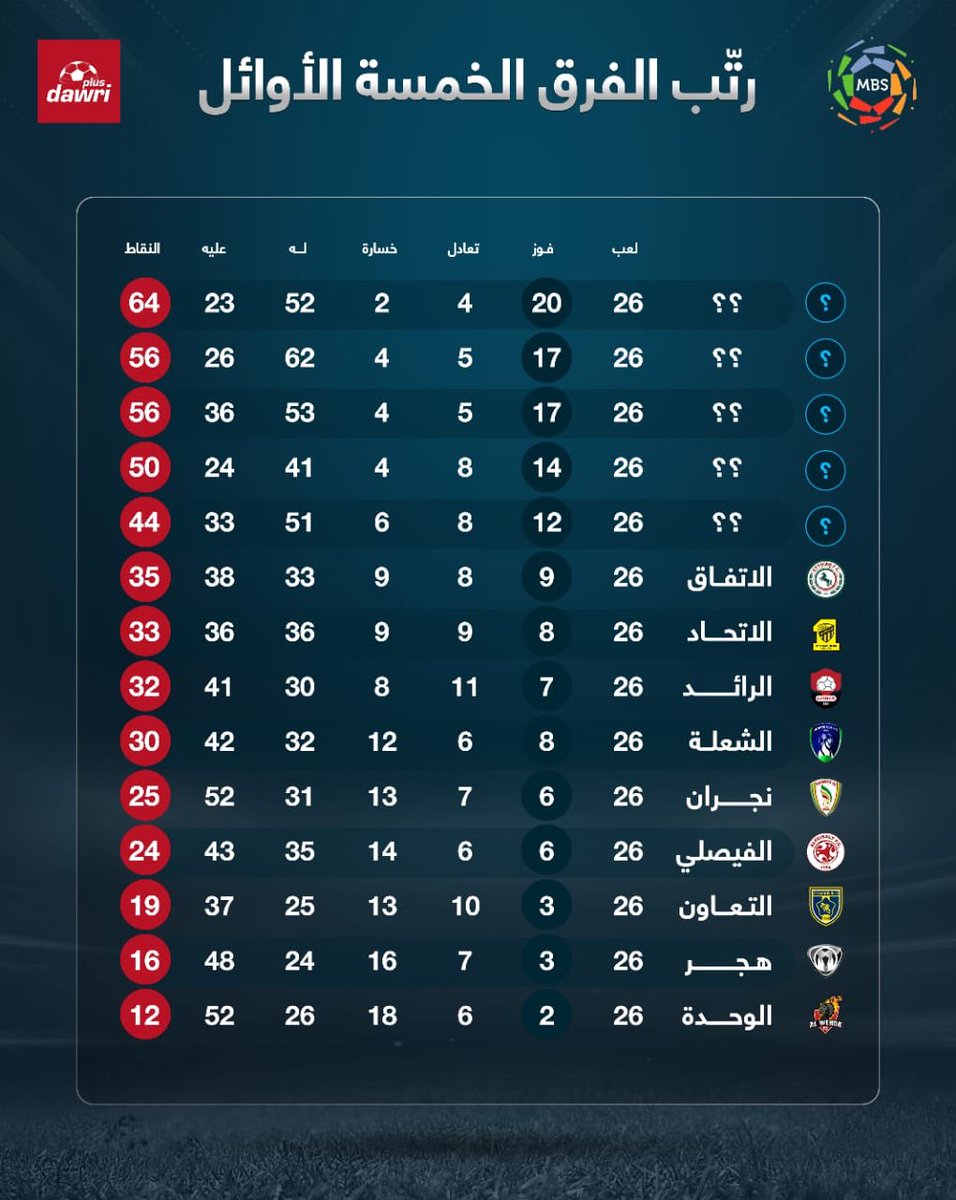 رتب الفرق الخمسة الاوائل .. وفي أي عام كانت؟
