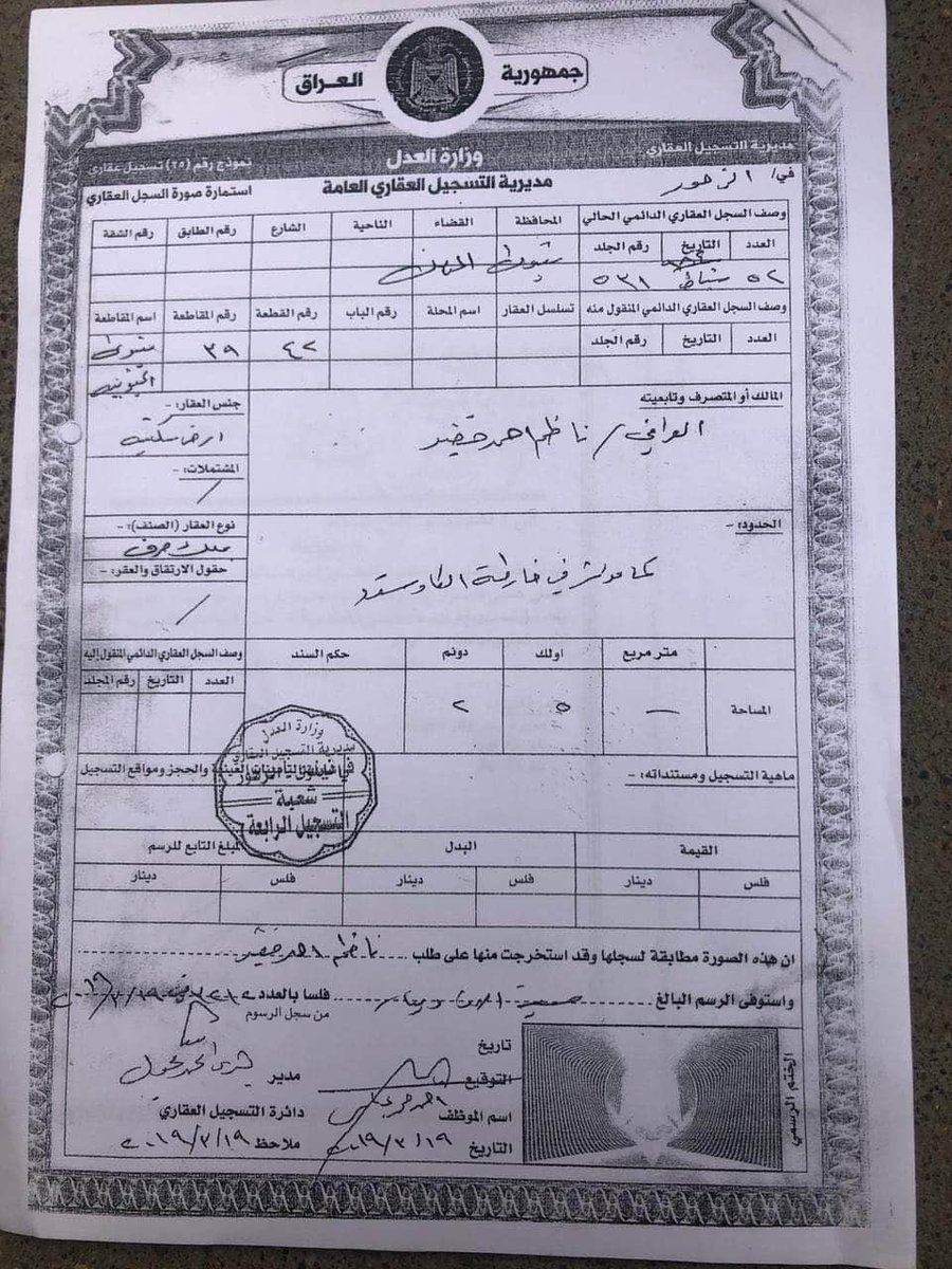 وفرت الميليشات غطاء لبعض الاشخاص الذين يعملون لديهم ويبحثون عن اي ارض متميزة تابعة للدولة او لاشخاص في خارج العراق وتقوم اولا باضاعة الاوليات في دائرة التسجيل العقاري #الموصل واعتماد كتاب من بغداد حول عائدية الارض مقابل مبلغ مالي يدفع في بغداد