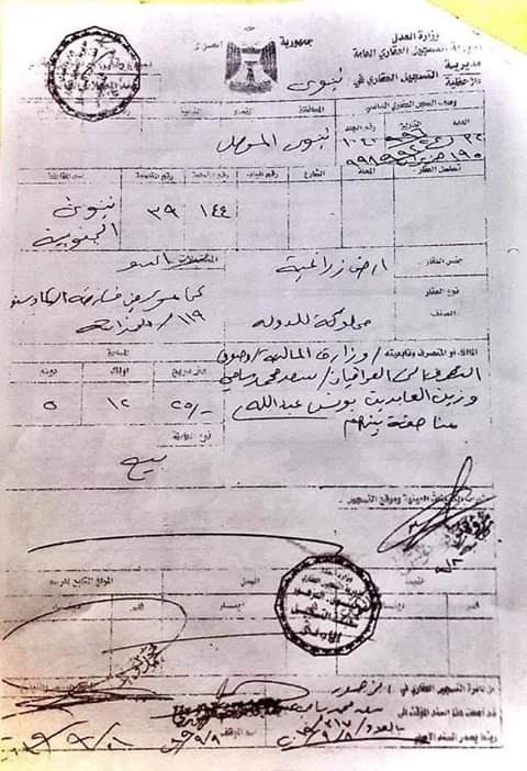 هناك عصابة بينهم مسؤولين وموظفين في الدولة يقومون بتزوير عقارات واملاك الدولة والمواطنين .