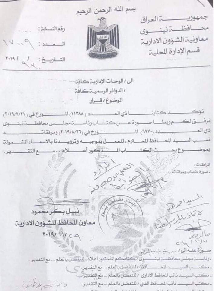 قناة الموصلية تتناول معلومات ووثيقة قمنا بنشرها على موقعنا تؤكد قيام محافظ نينوى بافتتاح قناة محلية خارج الضوابط والتعليمات المالية والإدارية والقانونية في مدينة #الموصل