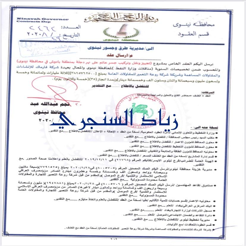جسر عائم ( ترقيعي ) في ناحية بادوش شمال مدينة #الموصل وعلى نهر دجلة بمبلغ يفوق :