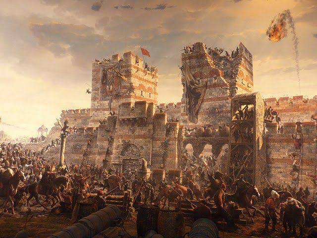 عبر تلك الثغرات لكنهم ما كادوا يفعلون ذلك حتى صدهم المدافعون وأخذ البيزنطيون يخلون بيوتهم والشوارع ويلتجئون إلى الكنائس بعد أن هالهم رؤية العثمانيون وقد تخطوا الأسوار واخذ بعض المواطنين السلاح ودافعوا مع إخوانهم الجنود عن المدينة
