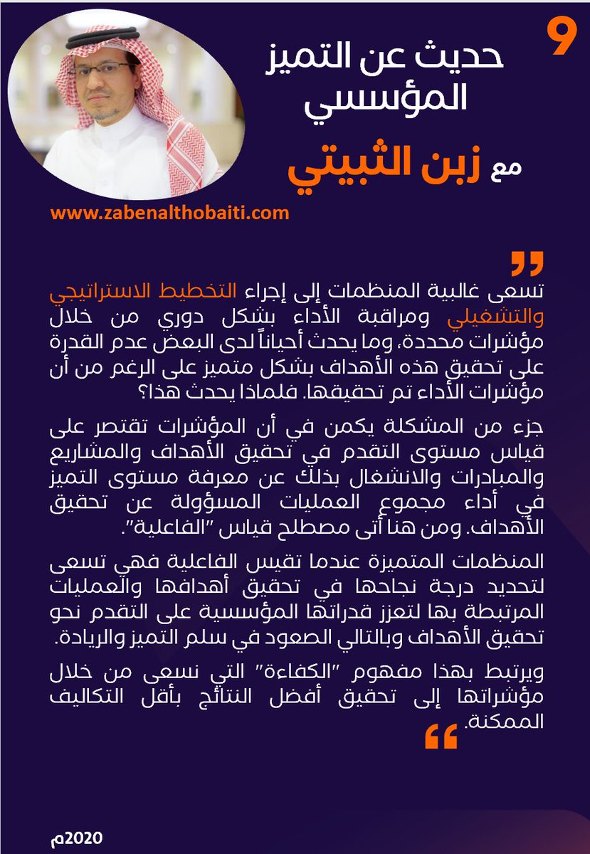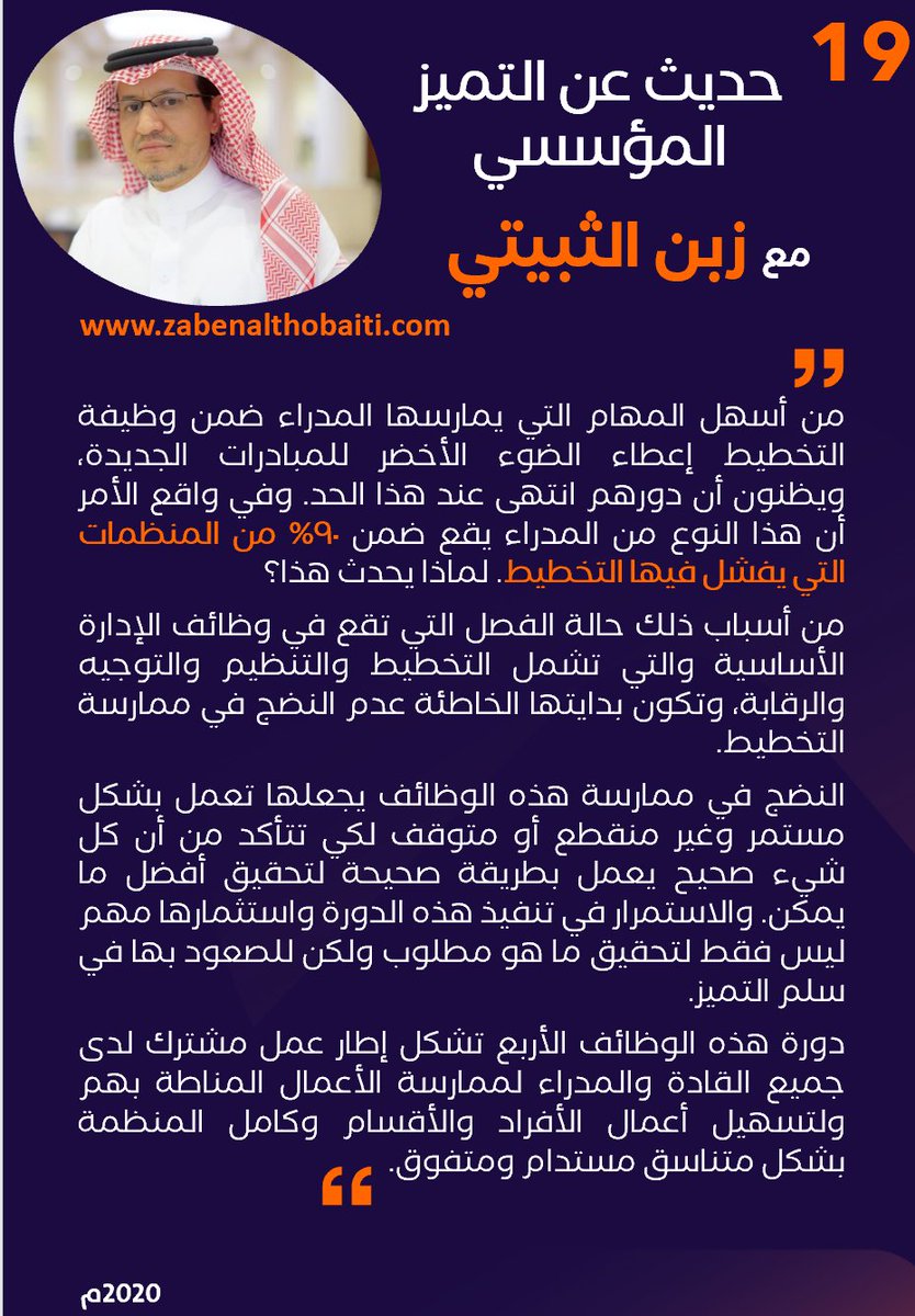 في النشرة (9) من حديث عن #التميز_المؤسسي أتحدث من زاوية مختلفة عن موضوع التخطيط والمؤشرات وعلاقة ذلك بتحقيق التميز.