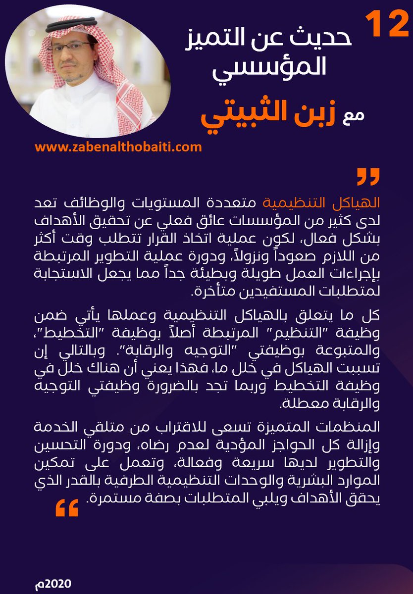 هل تريد أن تعرف ما إذا كنت تعمل ضمن هياكل تنظيمي ميسرة أو عائق أمام تحقيق #التميز_المؤسسي ؟ تعرف على وجهة نظري من خلال النشرة (12).