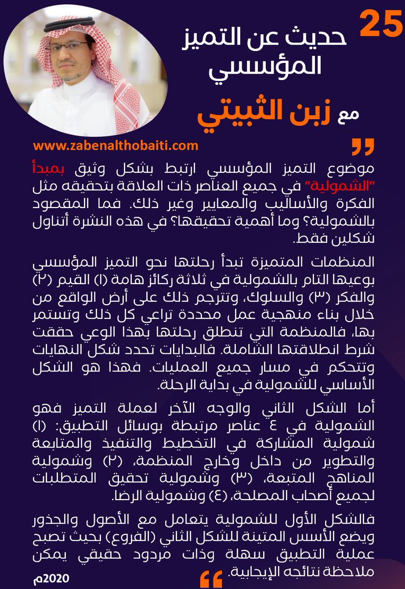 الشمولية مفهوم وممارسة ارتبطت بشكل واضح ب #التميز_المؤسسي، فماذا تعني؟ النشرة (25) تعرفك على شكلين فقط من تطبيقاتها.