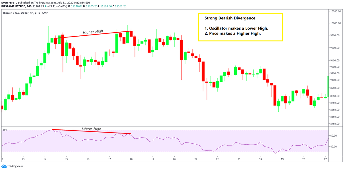 2. Bearish Divergence only looks at the Highs.