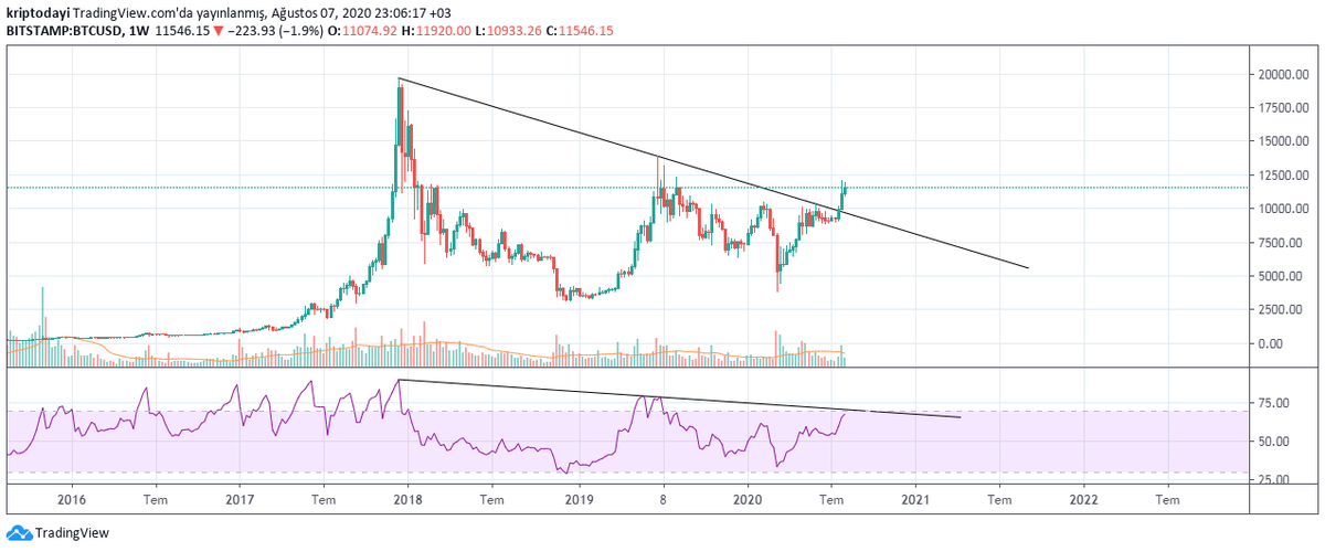 +Boğa dönemi için takip edeceğimiz bir önemli gösterge de bence bu olmalı.Bu Rsi trendi kırıldığında daha da rahatlayacam :)