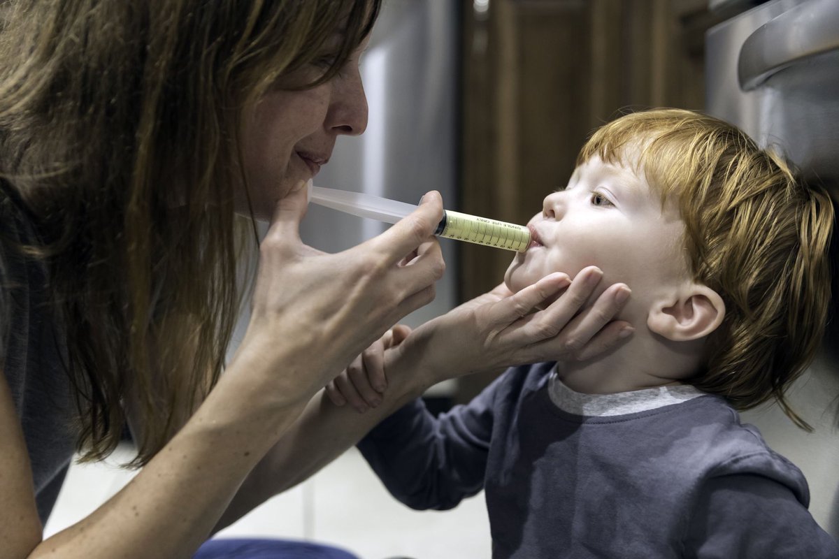 - اذا الطفل ما يقدر يأخذ المضاد عن طريق الفم سواء بسبب الترجيع او بسبب الخمول الشديد