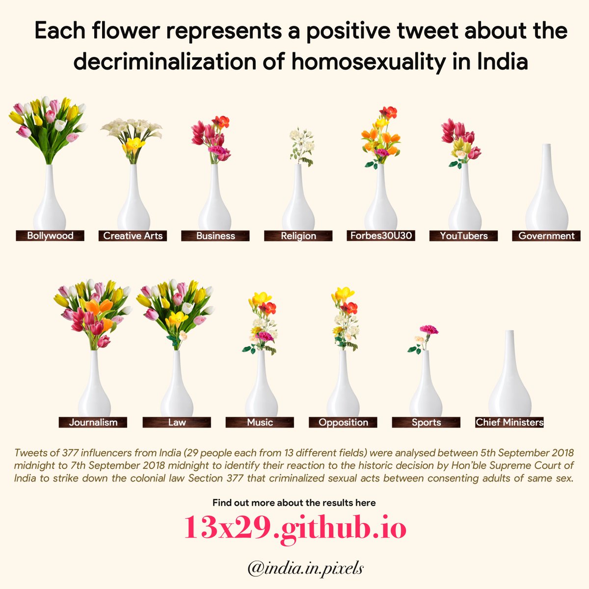 The 13 x 29 project tracks 13 fields with 29 people each, visualizing how India reacted to this historic decision.