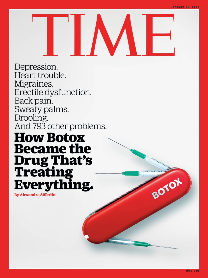واستمر #البوتكس بتحقيق النجاح والشهرة وازدياد استخداماته في مجالات كثيرة في الطب ليظهر في عام 2017 على غلاف مجلة التايمز وتسميته بالمادة التي تعالج كل شيء! لكثرة استخدامته بما يفوق 700 استخدام ! #سلمى_البرقاوي