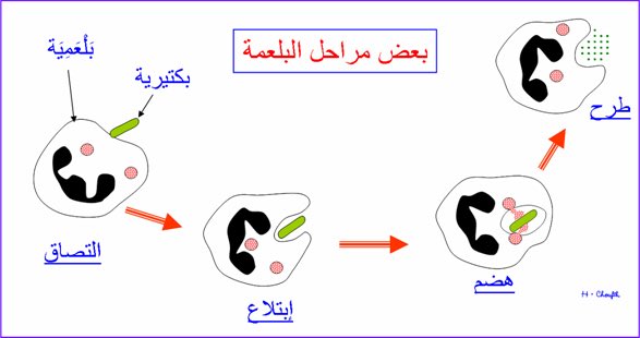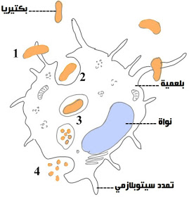 بالبلعمه هي خلايا الدم البيضاء الأكوله حيث تكافح المرض وتقضي على مسببه ،هذه الخلايا مثل خلايا الدم البيضاء المتعادله والخلايا الأكوله الكبيرة