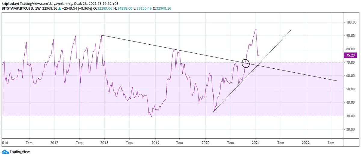 Öncelikle Temel Analizin de daha çok önem arz ettiği bu dönemlerde #Bitcoin için Bearish bir durum veya haber şuan yok.Hatta aksine Bullish kokan hareketli günler geçiriyoruz.Teknik olarak baktığımızda++