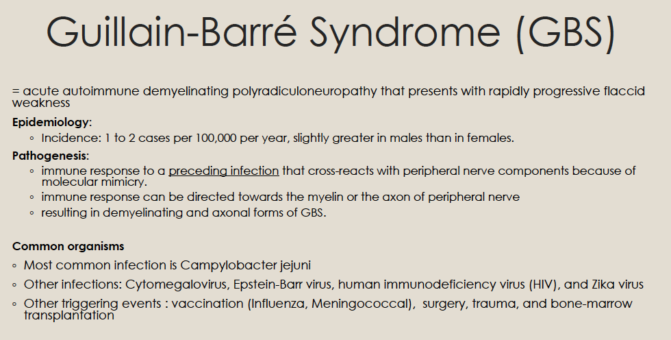 EMG: Diffuse axonal & demyelinating neuropathy consistent with GBS.