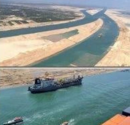 4/فيما تدفع 4 قاطرات نهاية السفينة جنوباً وتضم القاطرتين الجديدتين عبد الحميد يوسف ومصطفى محمود بقوة شد (70)طن لكل منهما والقاطرتين بورسعيد 1 وبورسعيد 2 والقاطرتان تحيا مصر وتحيا مصر 2👇