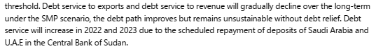 'The SMP scenario' means successful implementation of the reforms, which are getting off to a bumpy start (inflation is going up and the Sudanese pound is losing value). Successful reform means that Sudan will qualify for debt relief, and the 50-70 billion dollar debt will shrink