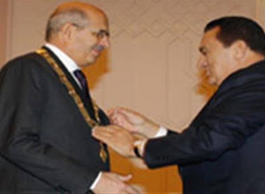 63/جاء #محمد_البرادعي تلك المرة وهو مُكلّف بخطة طويلة المدى لمواجهة نظام الرئيس #مبارك والسعي إلى إسقاطه ..على الرغم من ان نفس البرادعي قبِل التكريم من نفس النظام قُبيل ذلك الموقف بفترة قليلة وذلك عندما منحه الرئيس مبارك قلادة النيل بعد حصول البرادعي على جائزة نوبل للسلام 👇