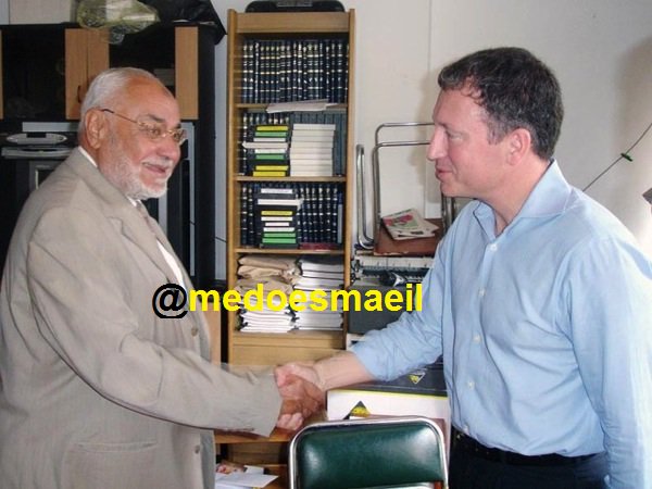 وللمصداقية هذه الصورة بين مارك لينش ومحمد مهدي عاكف مرشد جماعة الإخوان وقتها 👇