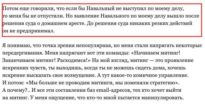 Или вот: "Выпускать расследование специально к выборам в Мосгордуму — это политика."